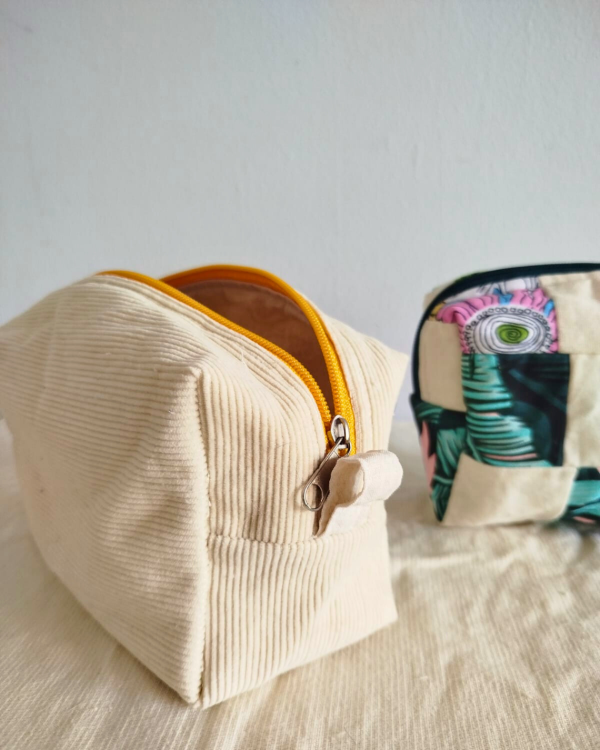 Neceser box confeccionado en corderoy de puro algodón y forrado en su interior con lienzo de algodón, con cierre con costuras reforzadas